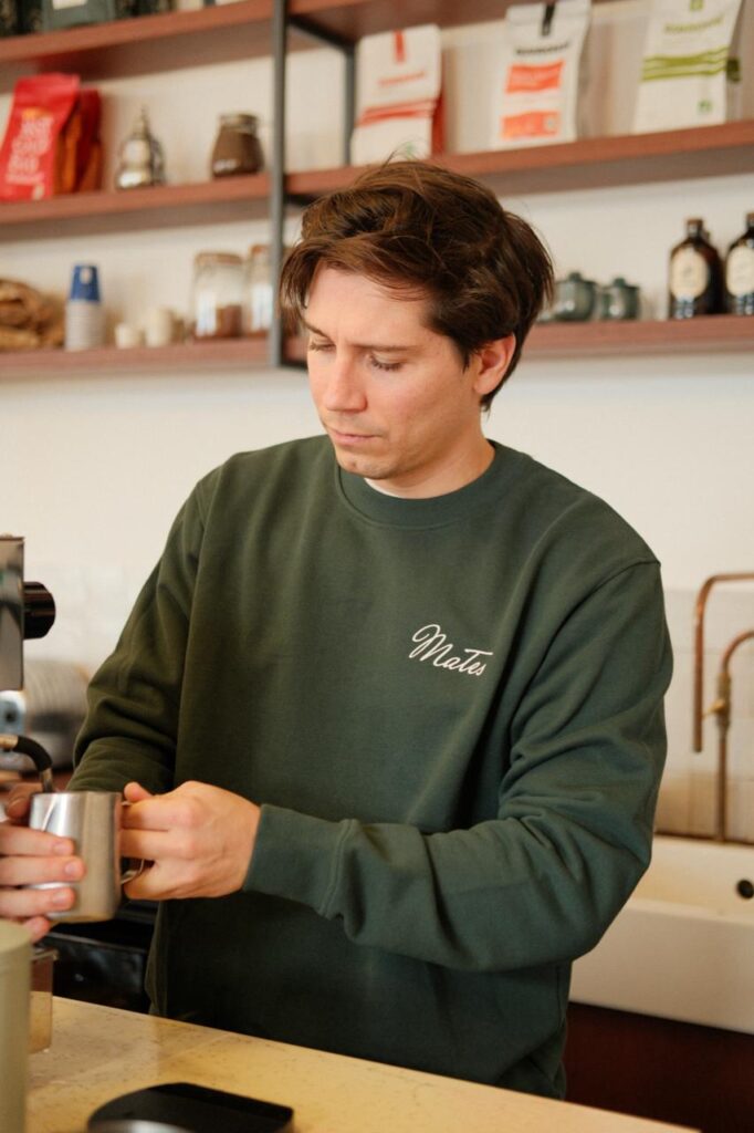 Tout a commencé en 2019. Entre deux voyages, quelques vagues et beaucoup de tasses de café partagées à l’autre bout du monde. On a voulu ramener un peu de cette culture du ‘Specialty Coffee’ chez nous, à Saint-Gilles-Croix-de-Vie. Mates, c’est l’histoire de potes (les ‘mates’) qui voulaient créer le lieu où ils auraient aimé passer leurs journées : un mélange de bon grain, de belles sapes et de sourires sincères.